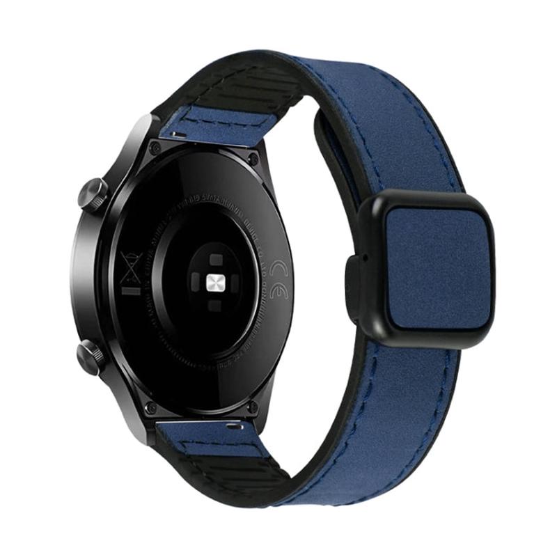 20mm Crazy Horse Texture Fold Magnetic Buckle Leather Silicone Watch Band(Dark Blue)
