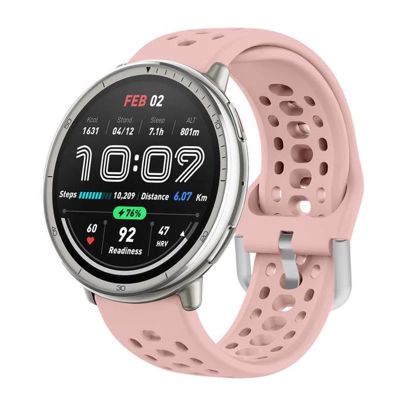 For Amazfit Active 2 Silver Buckle Silicone Sport Watch Band(Pink)