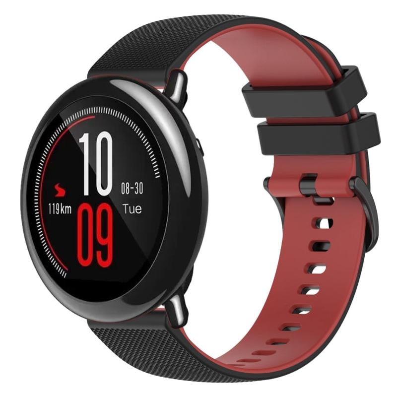 For Amazfit Pace 22mm Checkered Two-Color Silicone Watch Band(Black+Red)