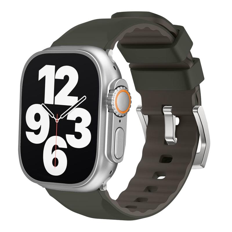 For Apple Watch Series 9 45mm Two-Color Silicone Watch Band(Dark Green)