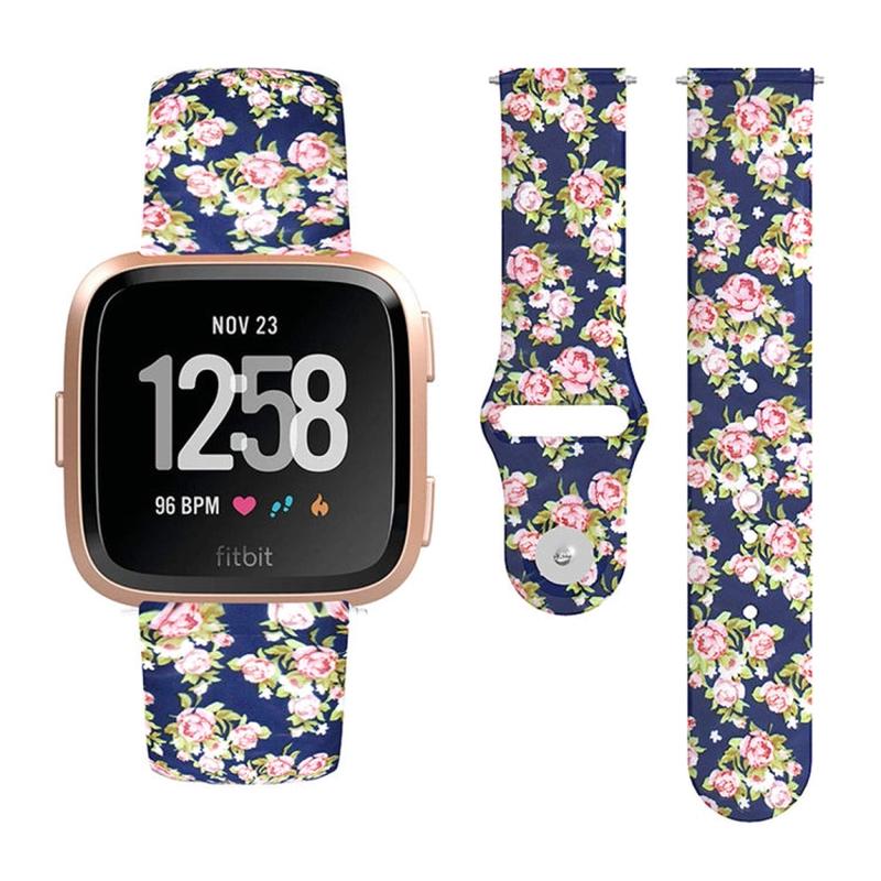 For Fitbit Versa 2 / Lite 22mm Reverse Buckle Printed Silicone Watch Band(Pink Rose)
