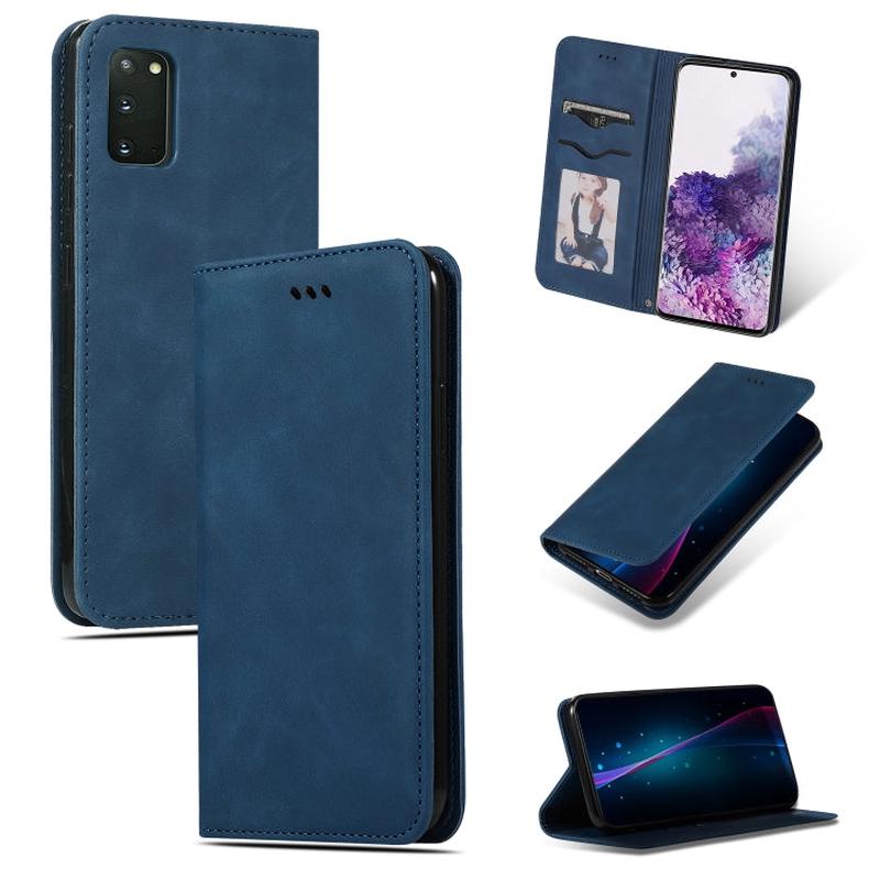 For Galaxy S20 Retro Skin Feel Business Magnetic Horizontal Flip Leather Case(Navy Blue)