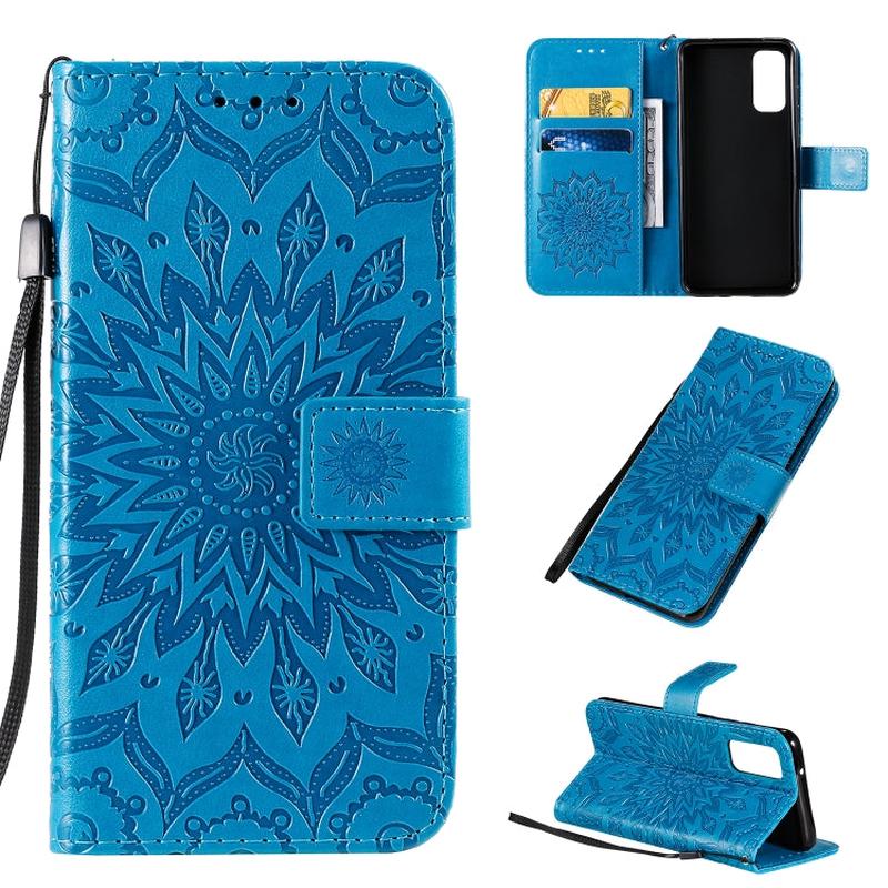 For Galaxy S20 Sun Print Horizontal Flip Protective Case with Holder & Card Slots & Wallet(Blue)
