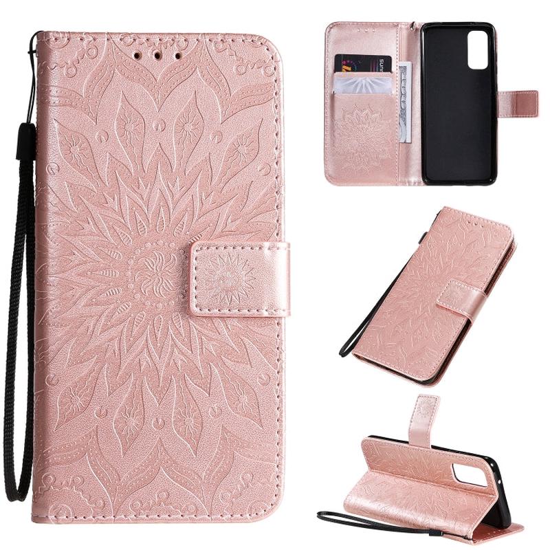 For Galaxy S20 Sun Print Horizontal Flip Protective Case with Holder & Card Slots & Wallet(Rose Gold)