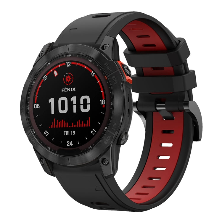 For Garmin Fenix 7X 26mm Two-Color Sports Silicone Watch Band(Black+Red)
