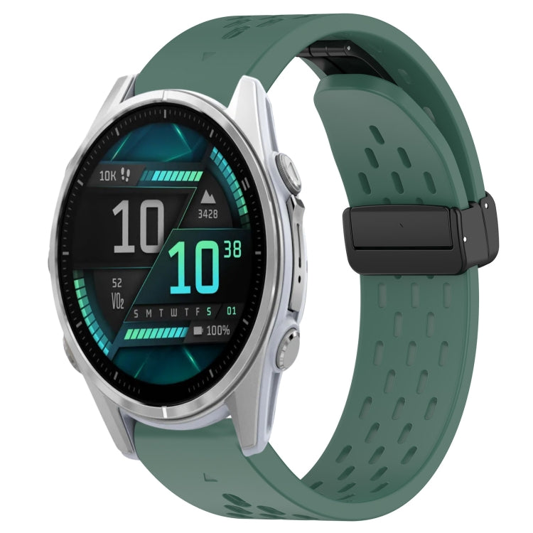 For Garmin Fenix 8 AMOLED 43mm Hole Folding Buckle 20mm Silicone Watch Band(Dark Green)