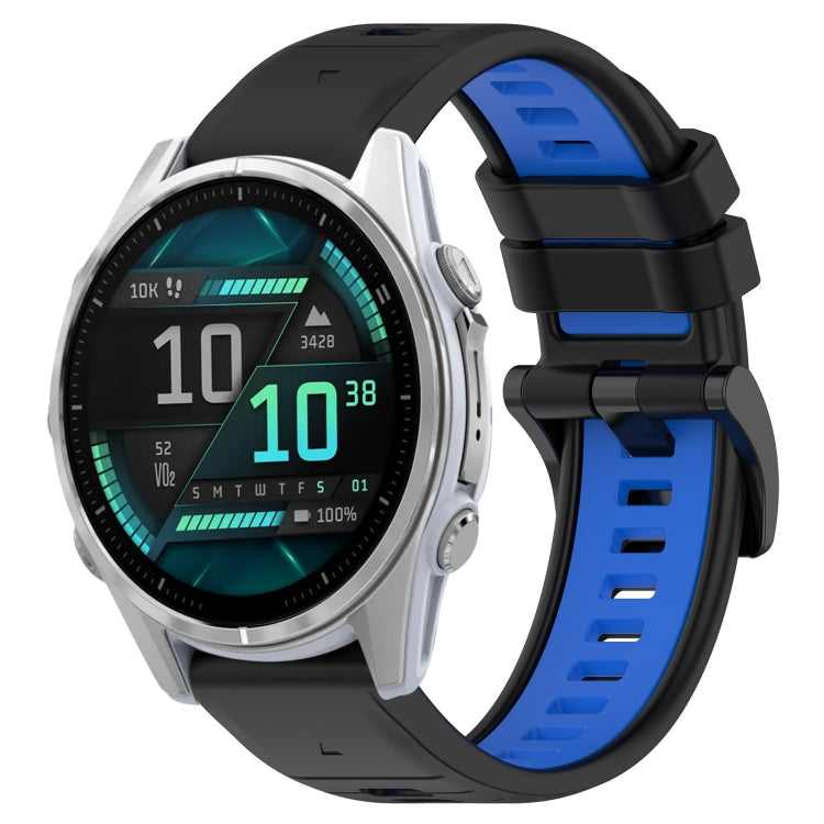 For Garmin Fenix 8 AMOLED 43mm Sports Two-Color 20mm Silicone Watch Band(Black+Blue)