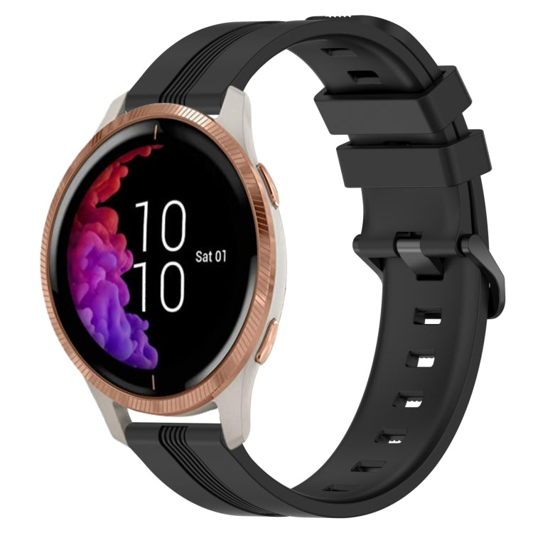 For Garmin Venu 20mm Concave Striped Slicone Watch Band(Black)