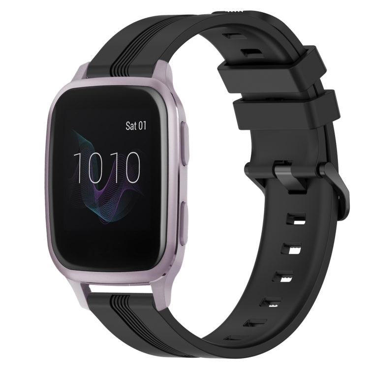 For Garmin Venu SQ 20mm Concave Striped Slicone Watch Band(Black)