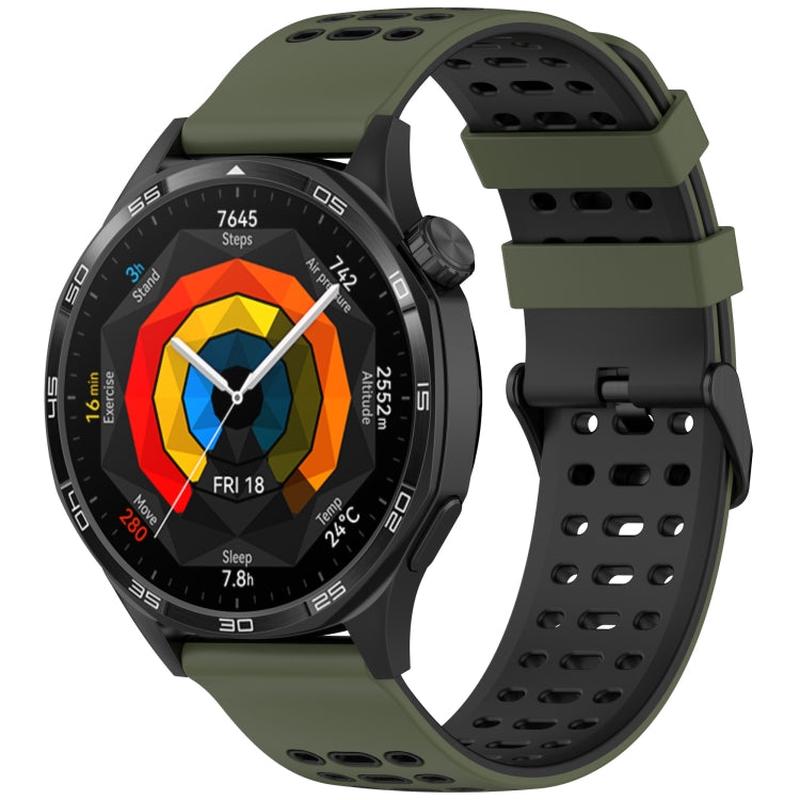 For Huawei Watch 22mm Three Rows Hole Two Color Silicone Watch Band(Army Green+Black)