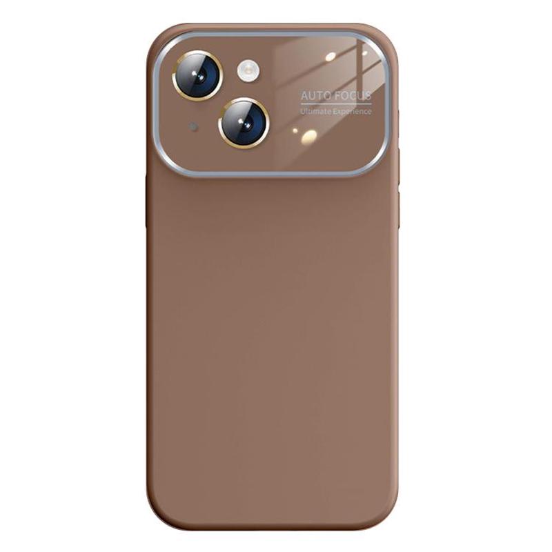 For iPhone 15 Kalebol Large Windows Frosted Liquid Silicone Phone Case(Coffee)