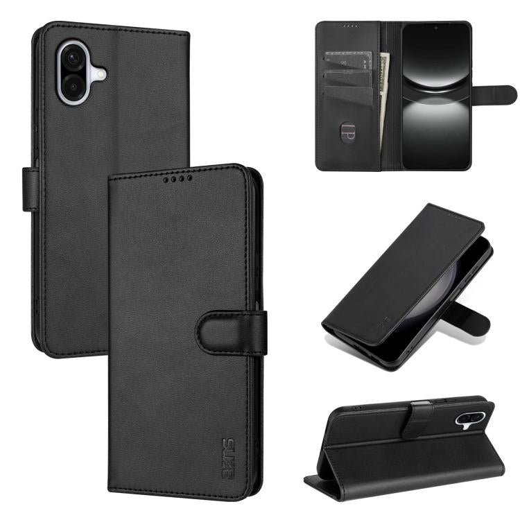 For Samsung Galaxy A07 4G AZNS Skin Feel Calf Texture Flip Leather Phone Case(Black)