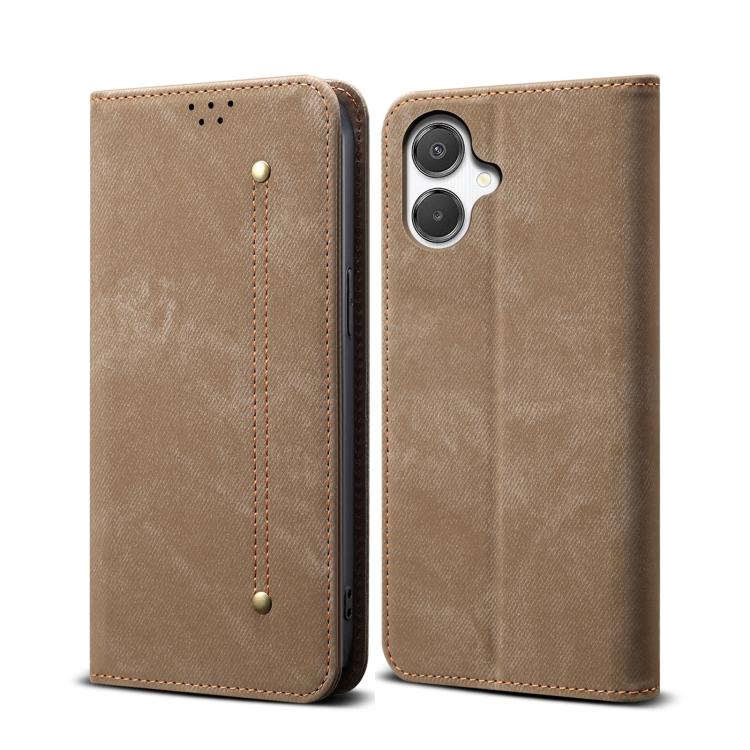 For Samsung Galaxy A07 4G Denim Texture Casual Style Horizontal Flip Leather Case(Khaki)