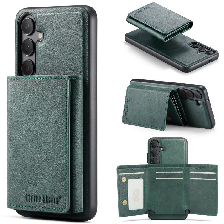 For Samsung Galaxy S24+ 5G Fierre Shann 2 in 1 Holder RFID Card Slot Wallet MagSafe Phone Case(Green)