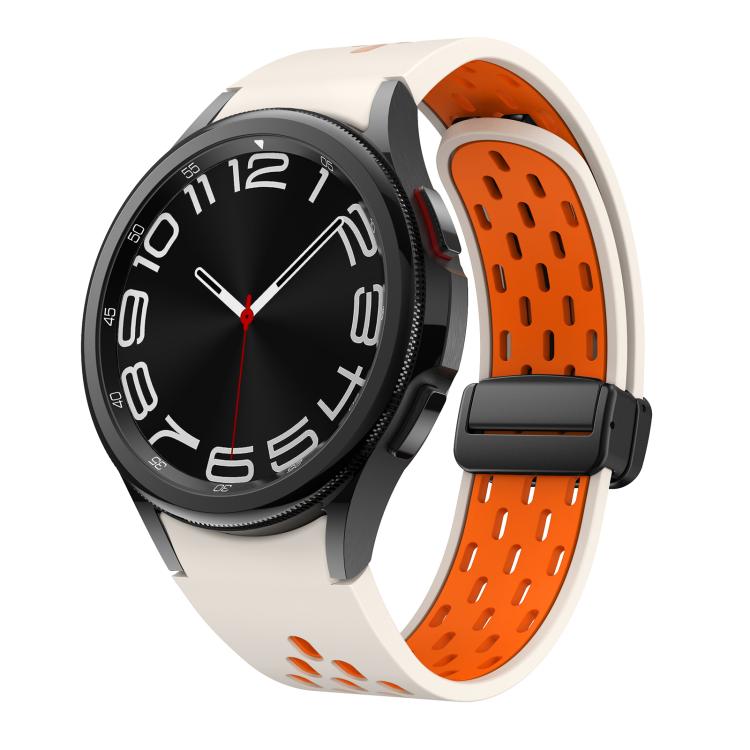 For Samsung Galaxy Watch 4 / 5 / 6 Kalebol Two-color Mesh Magnetic Black Buckle Silicone Strap(Starlight Orange)