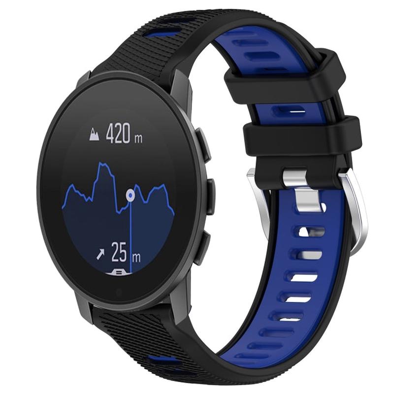 For SUUNTO 9 Peak Pro 22mm Sports Two-Color Steel Buckle Silicone Watch Band(Black+Blue)