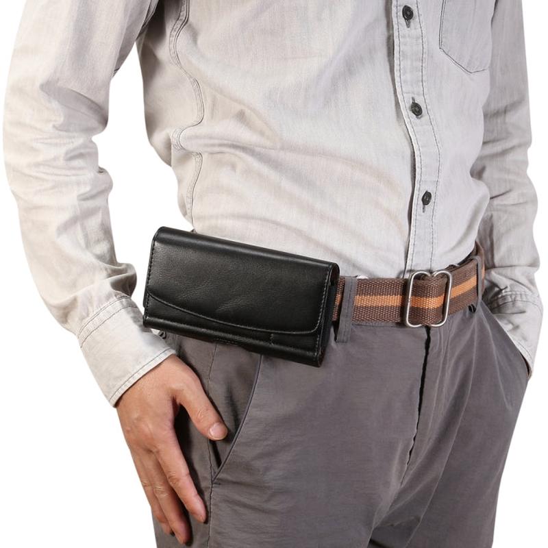 Lambskin Elastic Band Men 5.7-6.0 Inch Mobile Phone Universal Hanging Waist Leather Case with Card Slot, For iPhone XS Max / 8 Plus / 7 Plus / Honor 8X and Other 5.7-6.0 Inch Mobile Phones(Black)