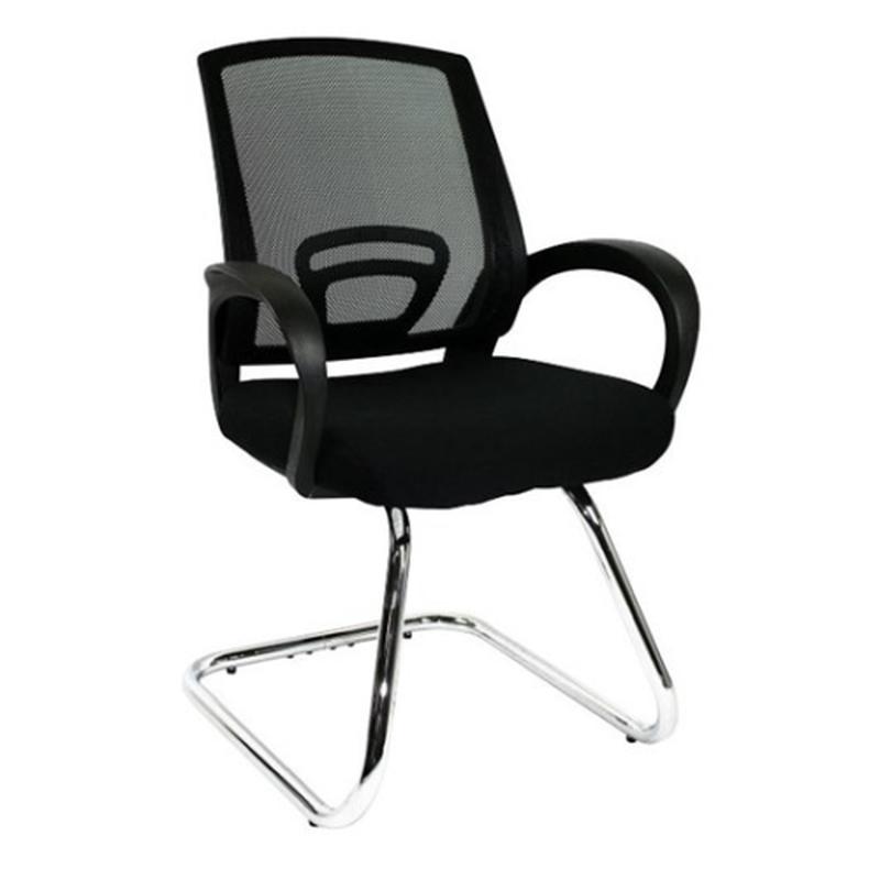 This Trice Visitors Chair has a modern design and a robust construction. The backrest has a built-in lumbar support and the mesh fabric allows for ventilation. The cantilever frame has a modern design and a sleek chrome finish and the arm rests provide great user comfort. The seat is upholstered with durable black fabric and it is suitable for users weighing up to 130kg.